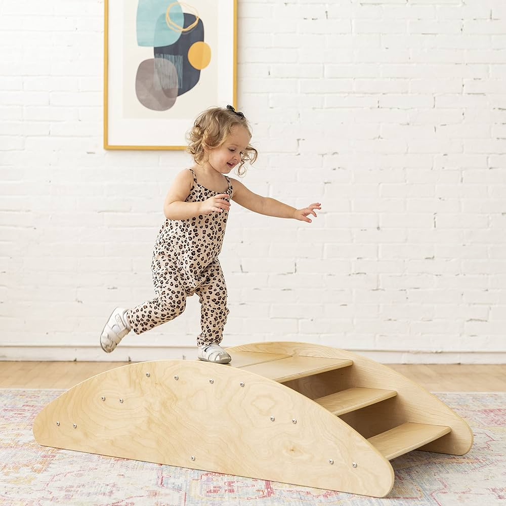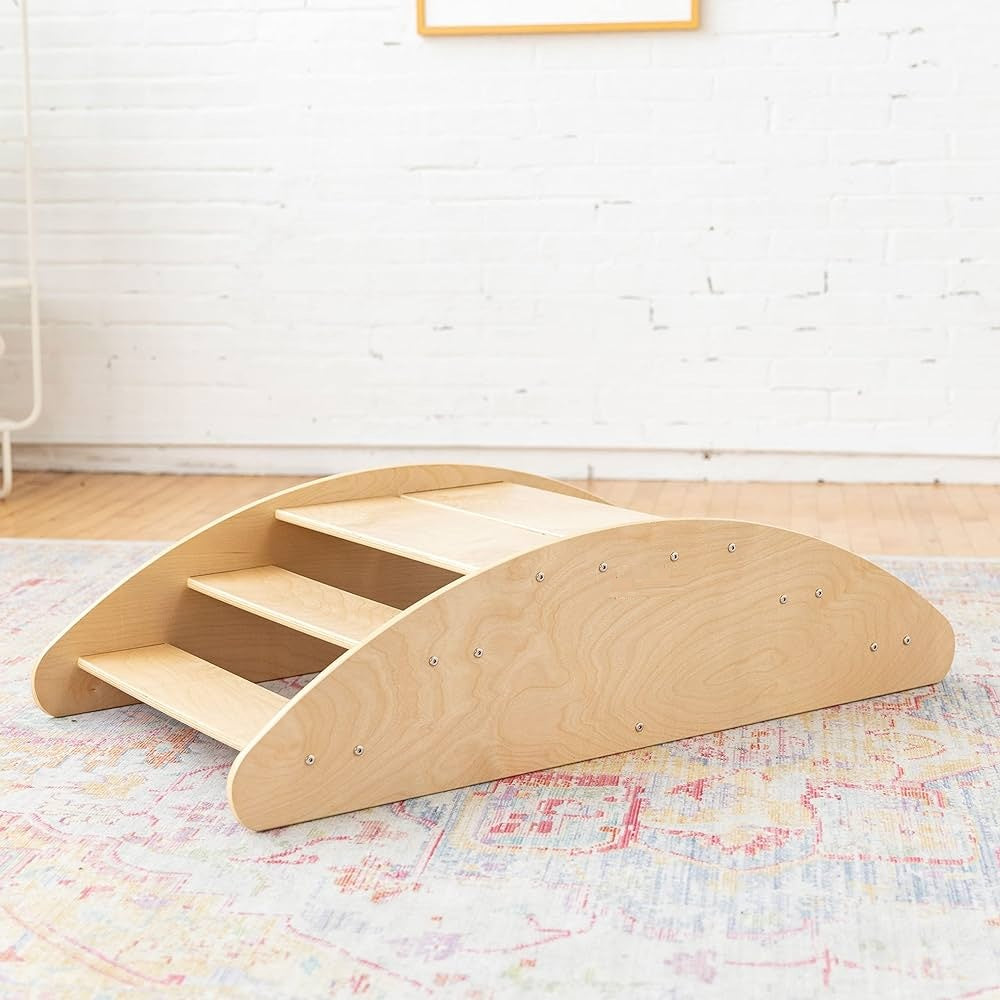 Kids 2-in-1 Step N Rock | Wooden Climbing Ramp & Rocker Balance Toy | Montessori Indoor Play for Toddlers | Sustainable Birch Wood, Teeter-Totter & Step Climber for Gross Motor Skills