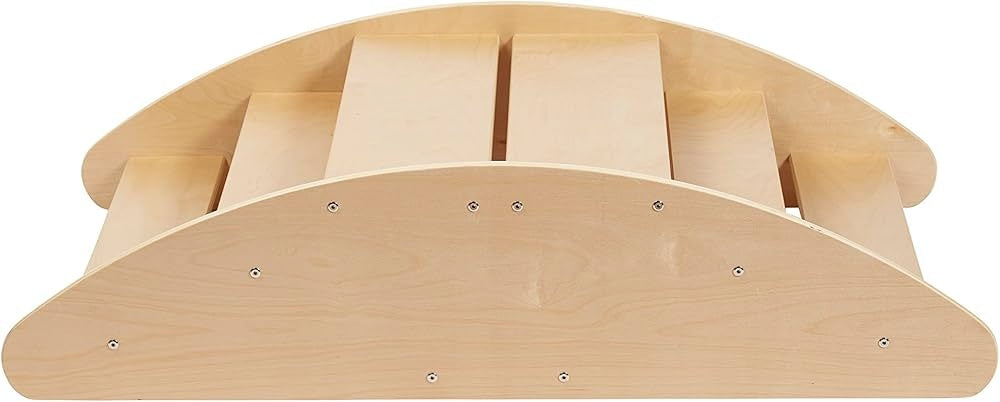 Crafted from sustainable birch hardwood, the Step ‘N Rock is strong, durable, and built to withstand everyday use at home, in preschools, and in daycare environments. The smooth wood finish and sturdy dowel handle make rocking safe and comfortable for small hands, while the step side promotes climbing confidence and motor-skill development.