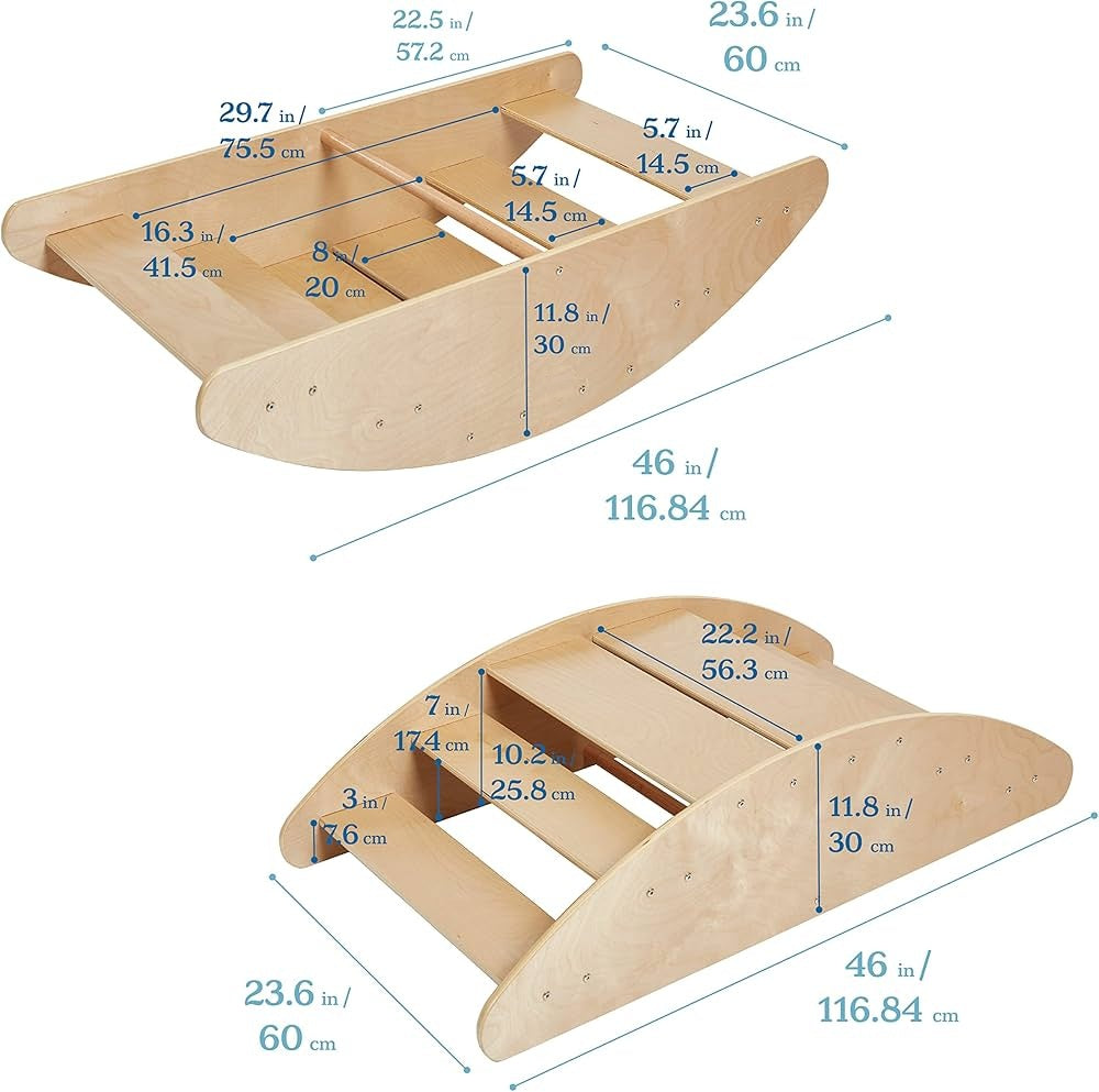 2-in-1 Design – Flip to change between a rocking teeter-totter and step climbing ramp