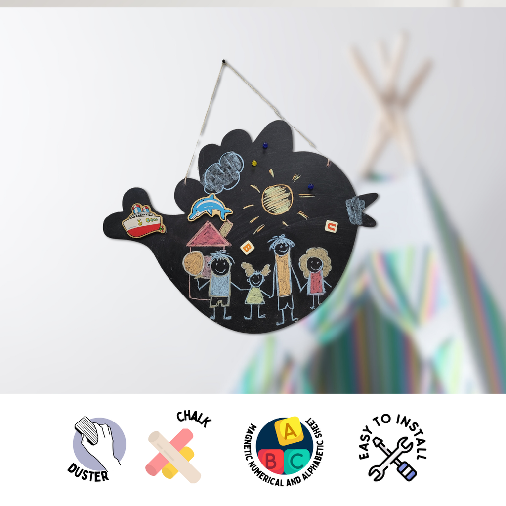 Transform your child’s playtime and room décor with the Wooden Wall Magnetic Chalkboard - Bird by KinderArt. This playful, bird-shaped chalkboard is not just a functional learning tool but also a charming addition to any kids’ space. Designed with premium wood, it doubles as a magnetic board, allowing children to write, draw, and stick magnetic letters and numbers for hours of creative fun.